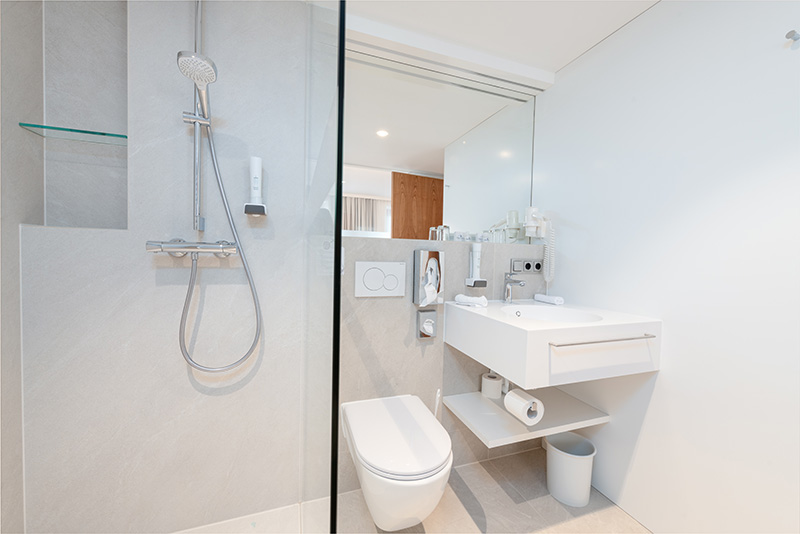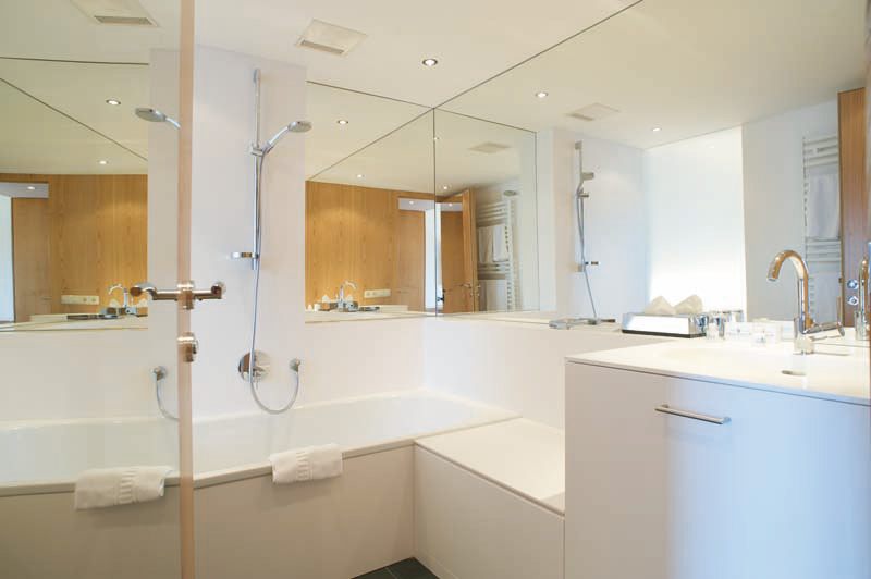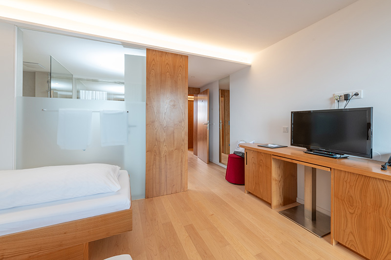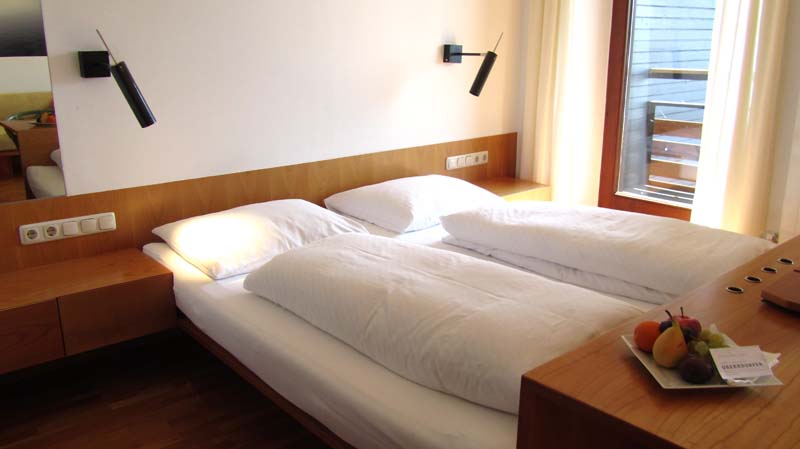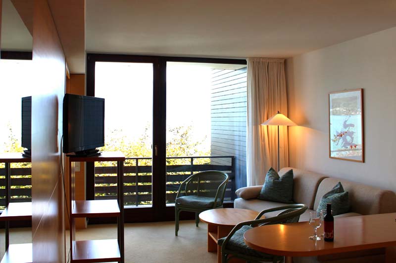 Alle Zimmer sind mit Bad und WC, Telefon, TV mit Radio, Minibar, gratis W-LAN, Fön und Bademantel ausgestattet. Die Doppelzimmer sind zwischen 23 m² und 26 m² groß, die Suiten zwischen 31 m² und 60 m². Zum Teil befinden sich auch in den Schlafzimmern Fernseher. Wenn Sie einen Hund mitbringen möchten, fragen Sie bitte zuvor an, da nur in bestimmten Zimmerkategorien ein Hund möglich ist. Die kostenlose Benützung des hoteleigenen Parkplatzes, der Sauna am See und des Badeplatzes sowie von Bademantel, Badeslipper und Badetücher für Sauna sowie Badeplatz sind im Preis inkludiert.